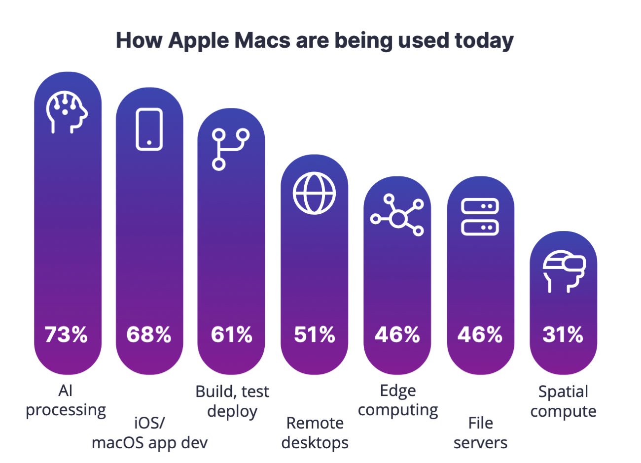 Une étude commandée par MacStadium montre que les ordinateurs d’Apple gagnent rapidement du terrain dans les grandes entreprises — et pas seulement dans les domaines où on les attendait. Réalisée par Censuswide auprès de 300 DSI américains, cette enquête révèle que 73 % des responsables informatiques citent désormais le traitement de l’intelligence artificielle comme principal cas d’usage du Mac.