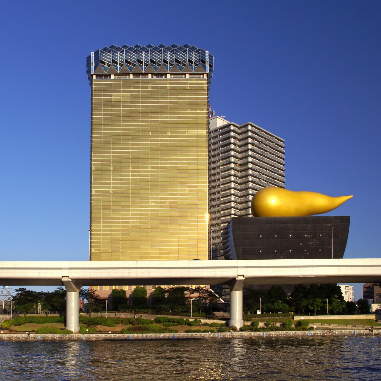 Le siège du groupe Asahi à Tokyo, représentant une choppe de bière et une « flamme en or ». Image Wikipedia/663highland, CC BY 2.5.