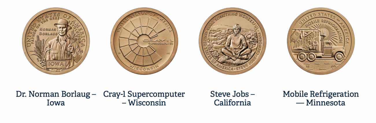 Le Wisconsin de son côté a choisi comme la Californie de célébrer le monde numérique, en décidant de frapper une pièce à l’effigie du Cray-1, rendant ainsi hommage à l’entreprise de supercalculateurs dont le siège était installé à Chippewa Falls, lieu de naissance de Seymour Cray, avant d’être rachetée par Hewlett-Packard et déplacée à Seattle.