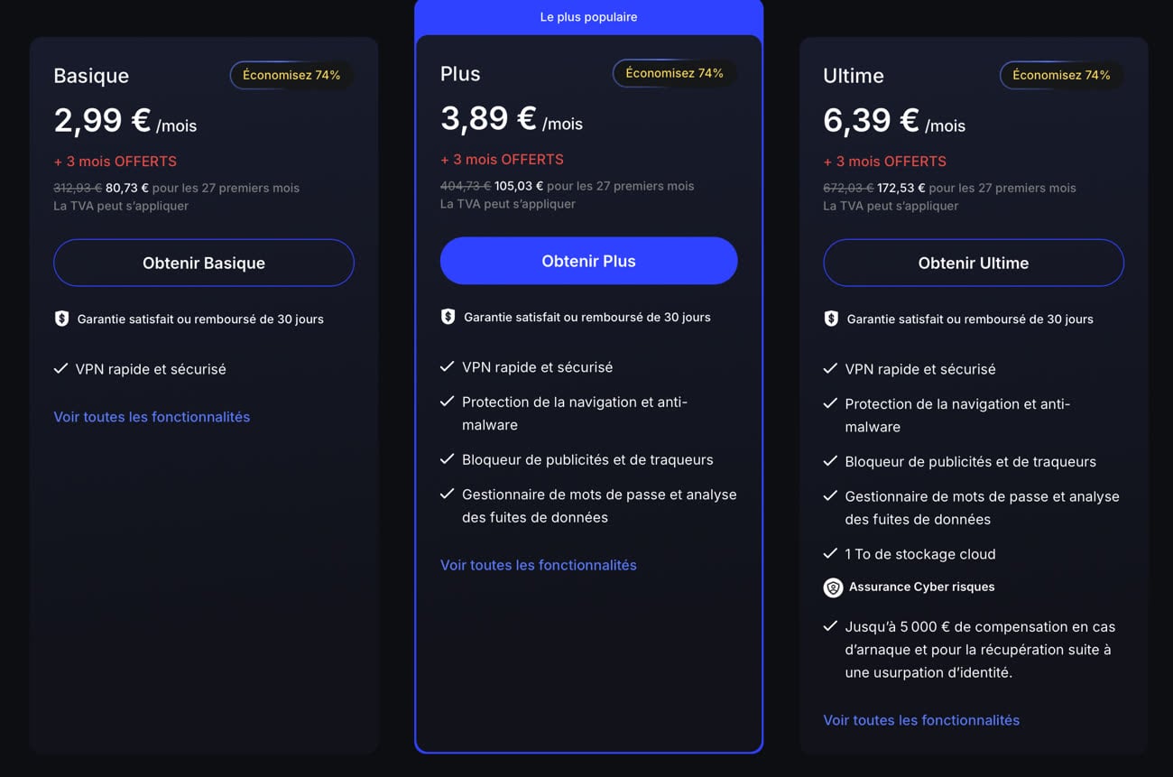 Quel que soit le forfait choisi — Basique, Plus ou Ultime — vous obtenez une cybersécurité d’excellente facture à un tarif imbattable.