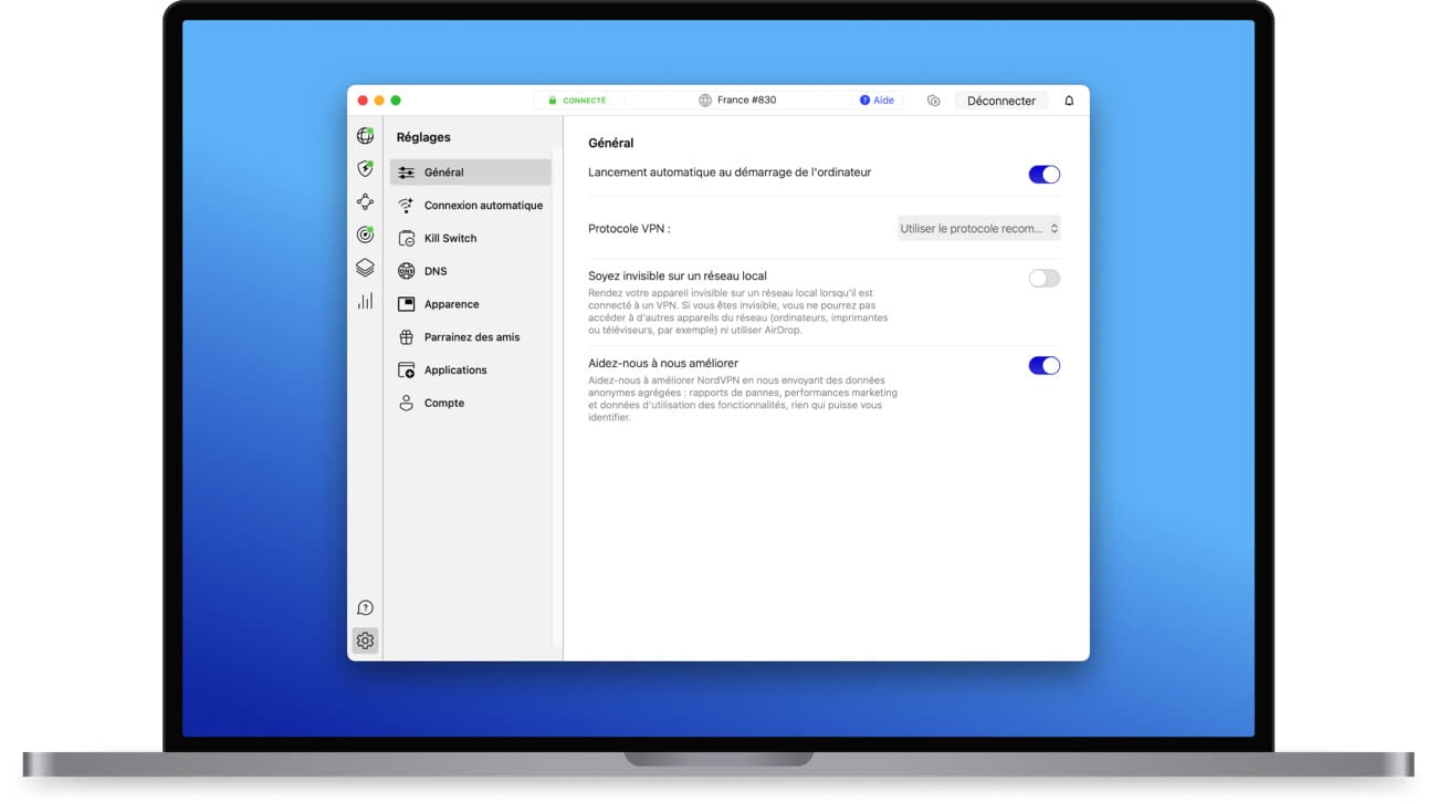 Sous le capot, NordVPN s’appuie sur son protocole maison NordLynx, basé sur WireGuard. Une technologie qui offre à la fois un haut niveau de sécurité et des vitesses parmi les plus élevées du marché. Autre point important : ses serveurs fonctionnent uniquement sur mémoire vive (RAM). Concrètement, cela signifie qu’aucune donnée n’est jamais stockée durablement. À chaque redémarrage, tout est automatiquement effacé.