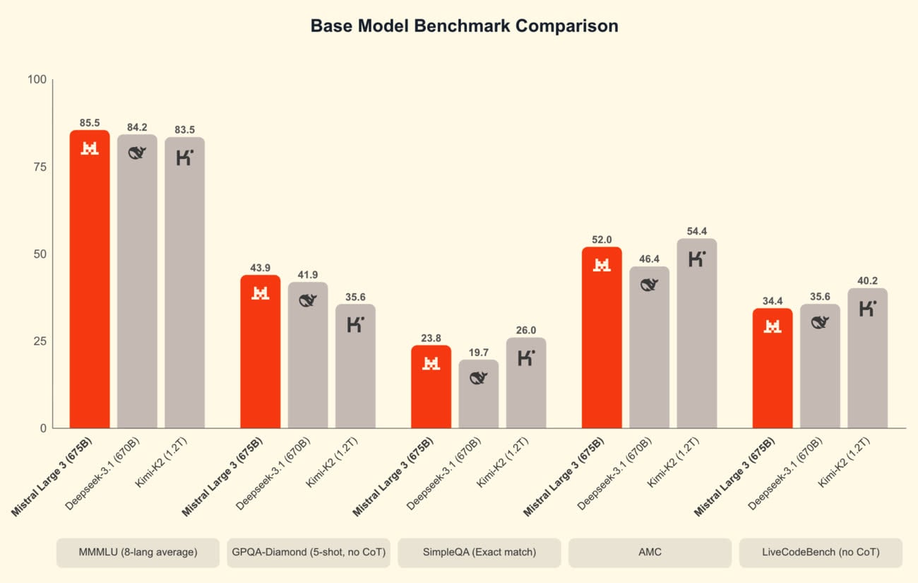 GPT-OSS, le modèle ouvert d’OpenAI qui compte jusqu’à 120 milliards de paramètres, ne fait pas partie des comparaisons pour une raison précise : il s’agit d’un modèle de raisonnement, qui traite chaque question via une « chaîne de pensée » censée produire de meilleures réponses. Une variante de Mistral Large 3 dédiée au raisonnement est promise pour bientôt.