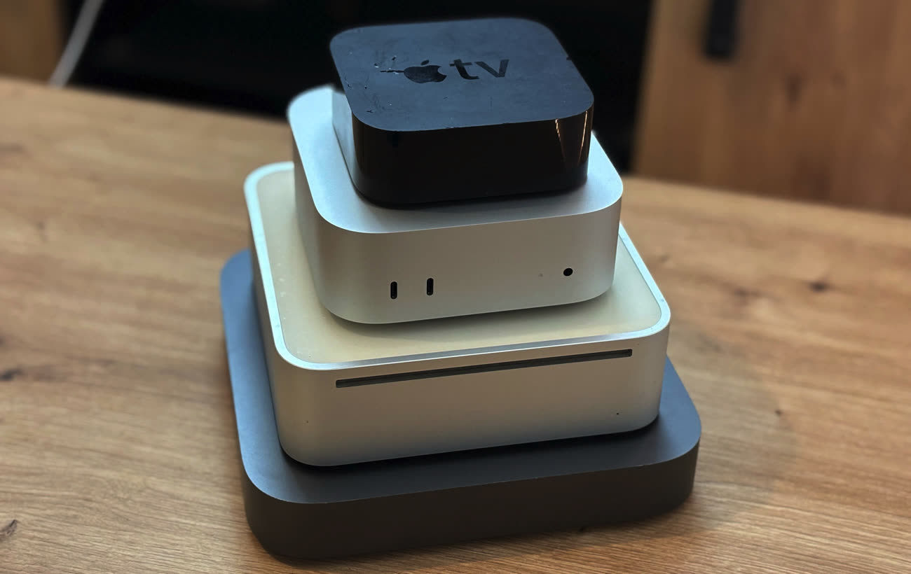 De bas en haut : DTK 2020, Mac mini G4, Mac mini M4, Apple TV HD. Image MacGeneration.