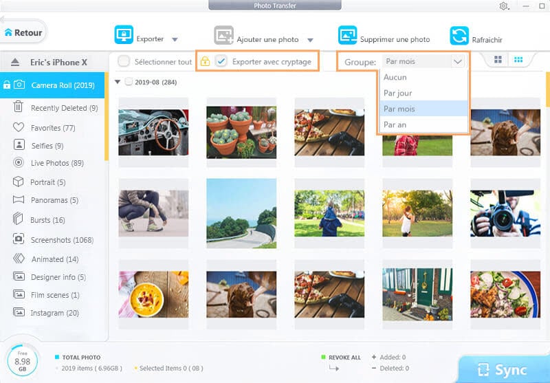 Concernant les photos, la bidirectionnalité s'impose naturellement : iPhone vers ordinateur, mais également ordinateur vers iPhone, avec une gestion fine par albums, dates ou dossiers personnalisés.