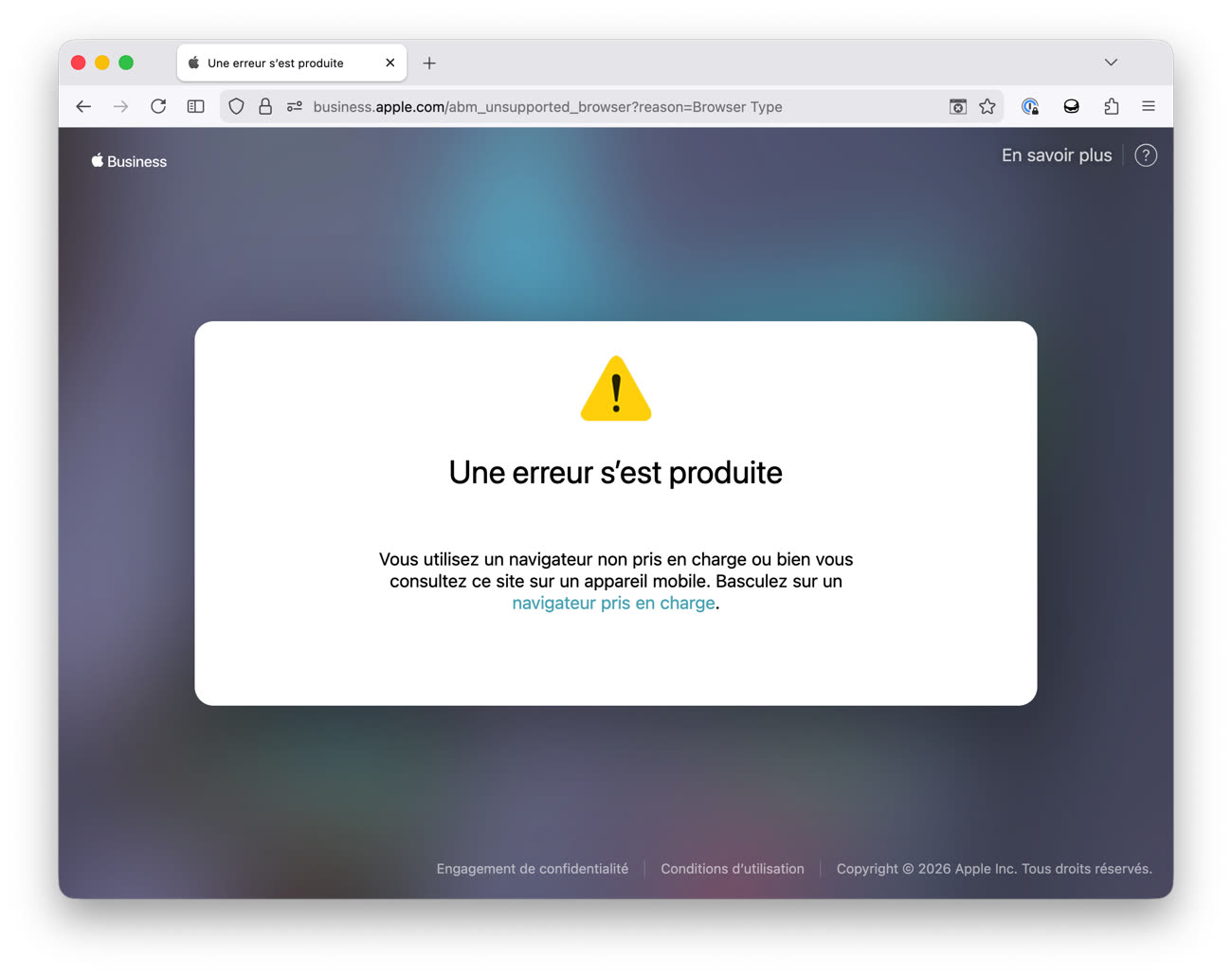 Les utilisateurs de Firefox n’ont pas le droit d’utiliser Apple Business Manager. Image MacGeneration.