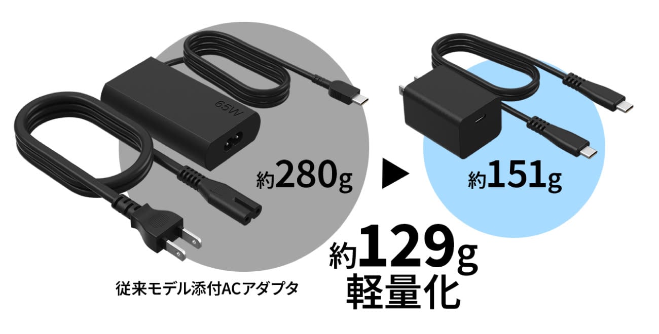 Pour travailler quelques heures loin d’une prise, cela devrait néanmoins suffire et on profitera alors d’un ordinateur vraiment léger. Fujitsu précise que le chargeur, toujours bien fourni avec cet ordinateur destiné au marché japonais, est aussi plus compact et léger (150 g) qu’avant, ce qui correspond bien à cet ordinateur ultra discret. La prise USB-C permettra de le recharger avec n’importe quel adaptateur USB-C Power Delivery de 65 W ou plus. Si les adaptateurs d’Apple sont souvent plus gros que la moyenne, ils ne sont de toute manière plus fournis en Europe.