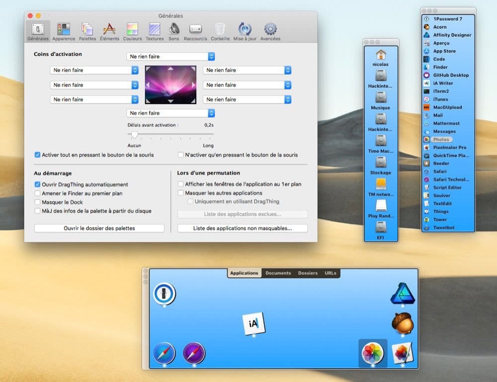 L’application avait pris un coup de vieux, mais le concept demeure toujours intéressant. DragThing était un lanceur qui permettait de créer des palettes sur lesquelles on plaçait les éléments dont on avait toujours besoin.