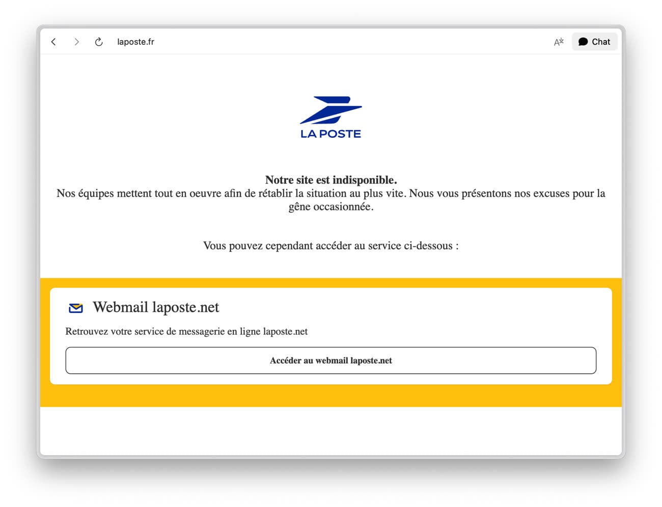 Comme le note FranceInfo, la communication de La Poste a singulièrement évolué au fil de la matinée. Si les premières alertes mentionnaient explicitement une « attaque informatique », le discours officiel s'est depuis lissé : l'entreprise évoque désormais une simple indisponibilité de ses services. Le site de la Banque Postale est également inaccessible. Seul, le service de mail de La Poste semble être épargné.