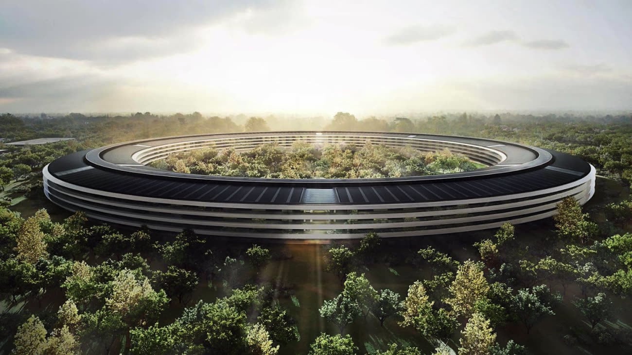 Il ne fait pas si beau que ça en ce moment à l’Apple Park... le vent souffle. Image Apple.