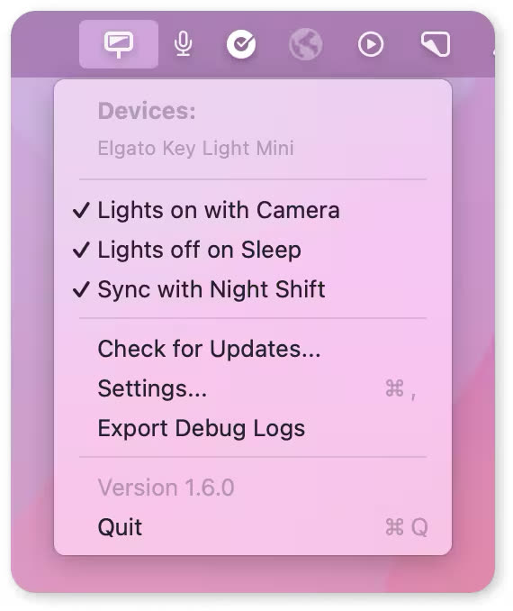 Son programme synchronise plusieurs choses. Premièrement, la lampe s'allume en même temps que la webcam et s'éteint de la même façon. Deuxièmenent, elle peut se couper si vous verrouillez le Mac et que vous n'êtes plus devant la caméra. Et troisièmement, un point très pratique, l'app synchronise la température de couleur de la lampe avec les réglages de Night Shift. Vous n'aurez donc pas un blanc digne d'un hôpital pendant votre conversation avec des amis en fin de soirée.