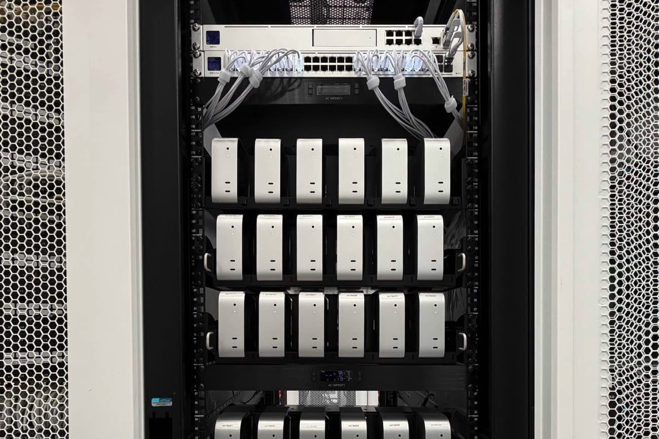 Une partie des Mac mini M4 utilisés pour transcrire tous les podcasts dans Overcast. Image ATP.