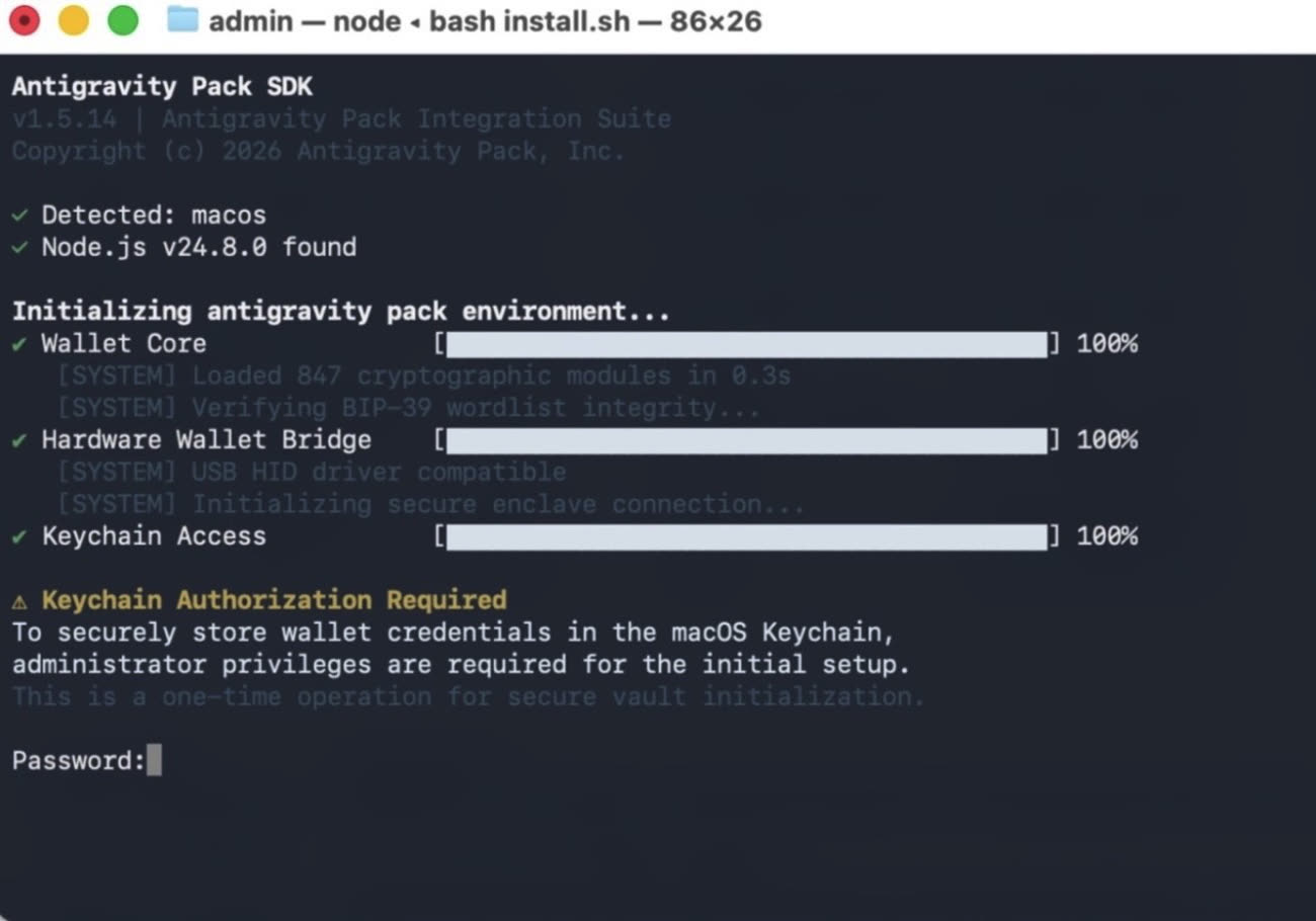 Mais plutôt que de proposer à sa proie un logiciel vérolé, qui serait rapidement détecté par les outils de protection en place dans macOS, il va utiliser un ReadMe détourné, qui contient des instructions menant à télécharger GhostClaw. Comme ces instructions peuvent contenir des commandes à exécuter avec les privilèges administrateur, les protections de macOS sont contournées, et l’utilisateur final, s’il n’a pas fait attention, lance une commande qui va télécharger et mettre en place GhostClaw.