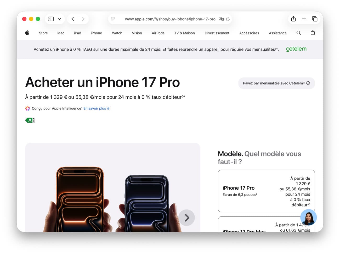 Ce crédit à 0 % permet d’étaler sans frais le paiement d’un iPhone, d’un Mac, d’un iPad, d’une Apple Watch, d’un Vision Pro ou même d’un accessoire sur 24 mois maximum. L’offre est soumise à l’examen du dossier, de la situation financière et de l’historique d’emprunt de l’acheteur.