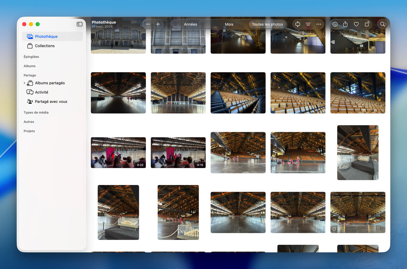 D’ailleurs, question mise en avant du contenu, on peut maintenant rétracter la barre latérale pour laisser plus de place aux clichés. Pour cela, il suffit de cliquer sur l’icône en haut à droite de la barre ou utiliser le raccourci clavier standard de macOS : ^⌘S. Idéal lorsqu’on veut simplement faire défiler sa longue liste de photos.