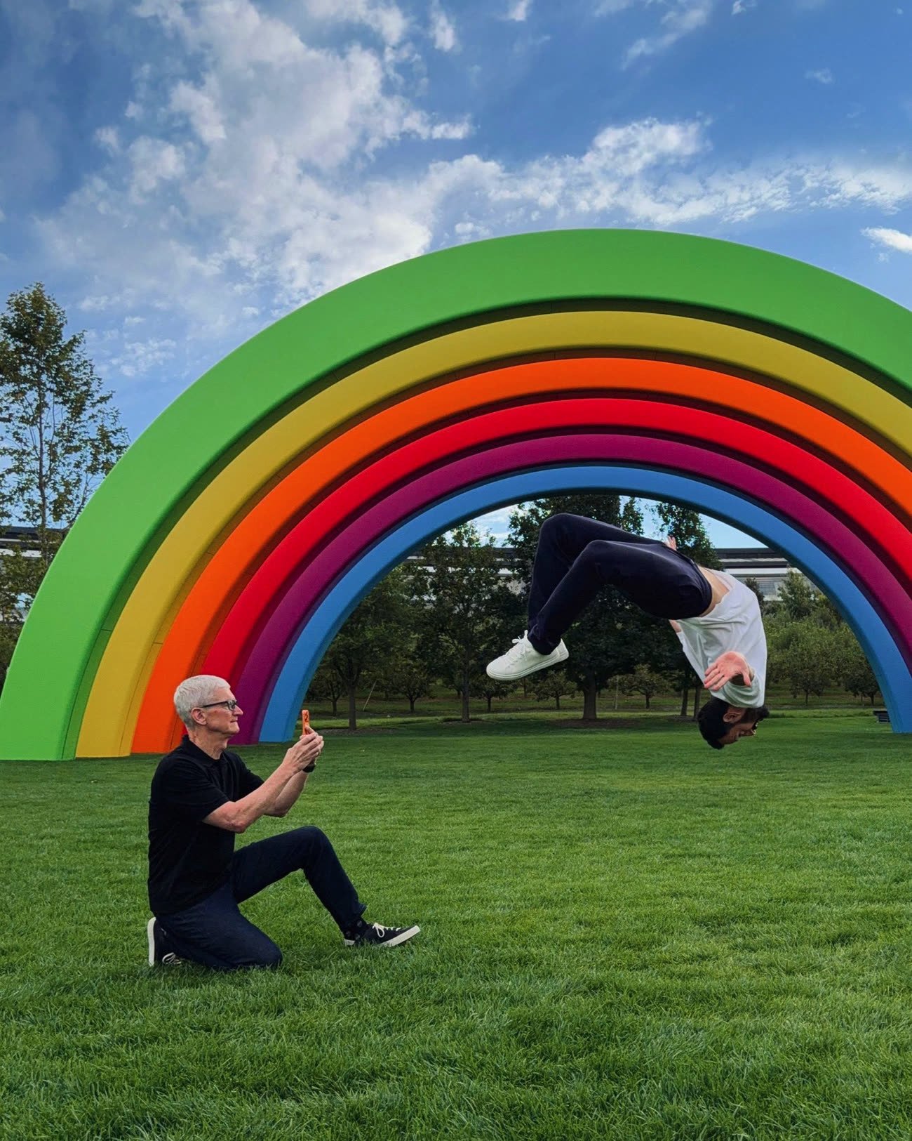 Antoine Dupont n’était pas le seul Français étranger au monde de la monde tech à avoir été convié à Cupertino le 9 septembre. Mathieu Forget, alias ForgetMat, a profité de l’événement pour transformer Tim Cook en photographe d’un jour : le patron d’Apple a tenu un iPhone 17 Pro pendant que l’influenceur-danseur rejouait ce qui a fait sa renommée sur les réseaux sociaux, à savoir les clichés où il semble flotter dans les airs.