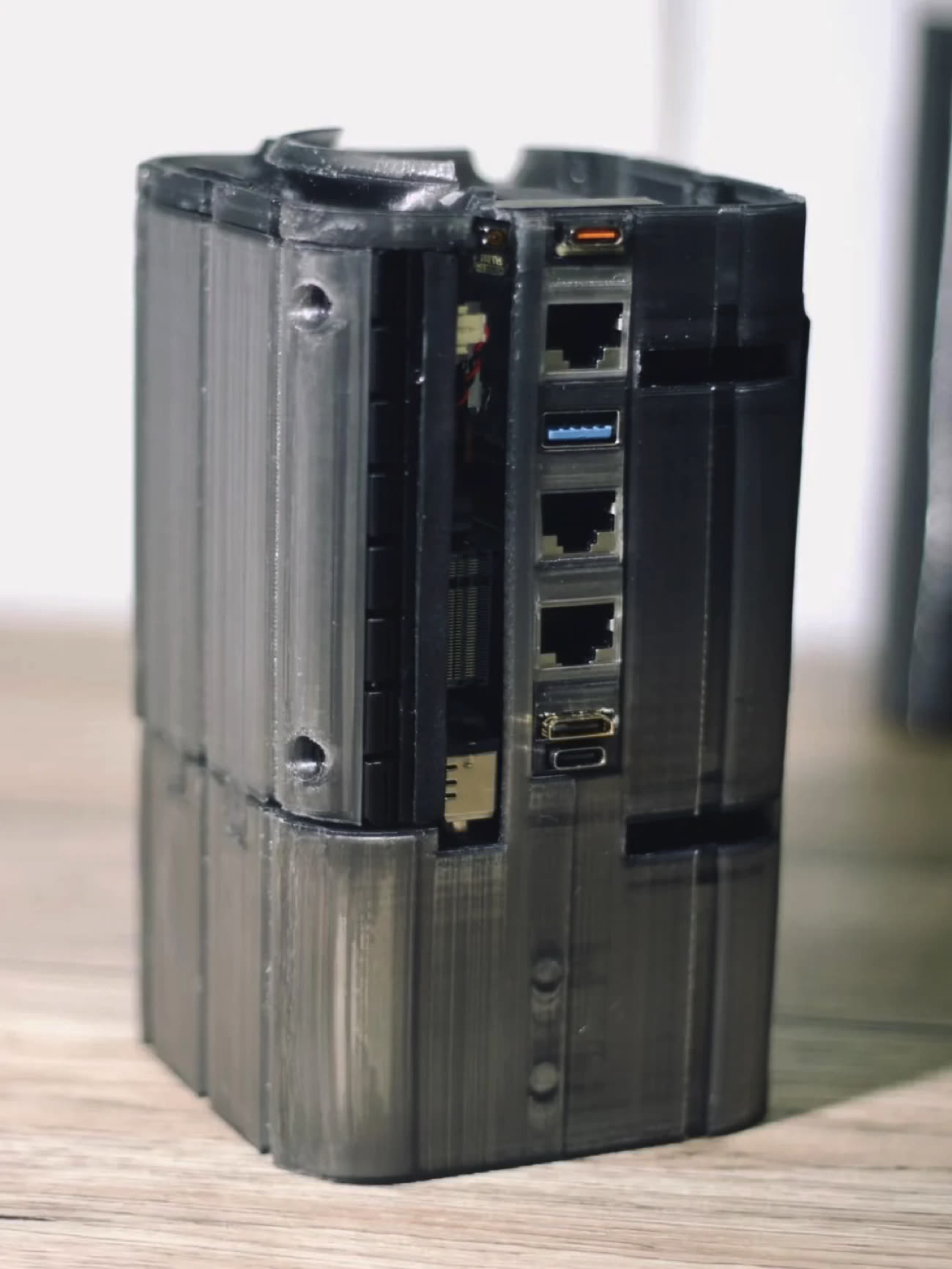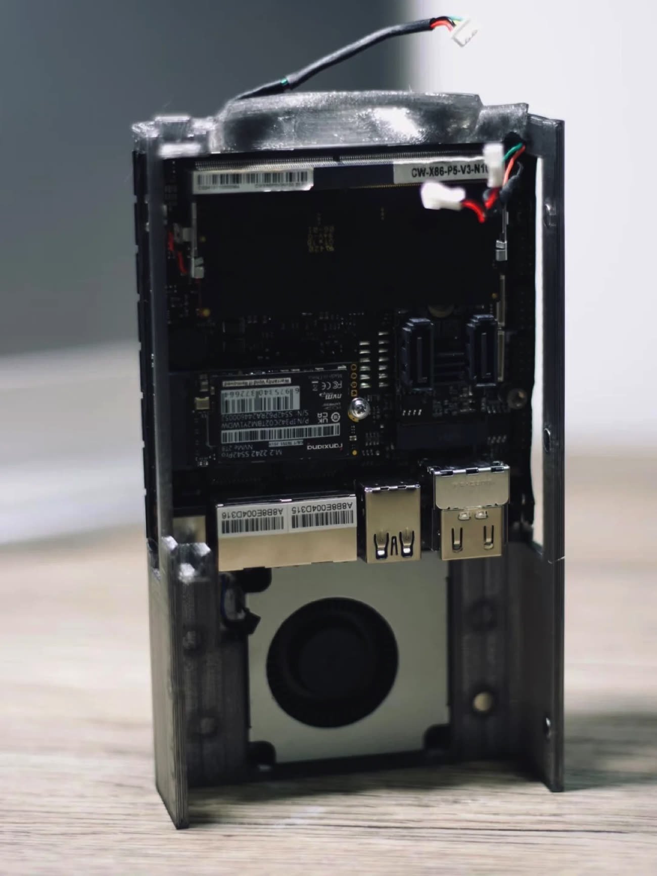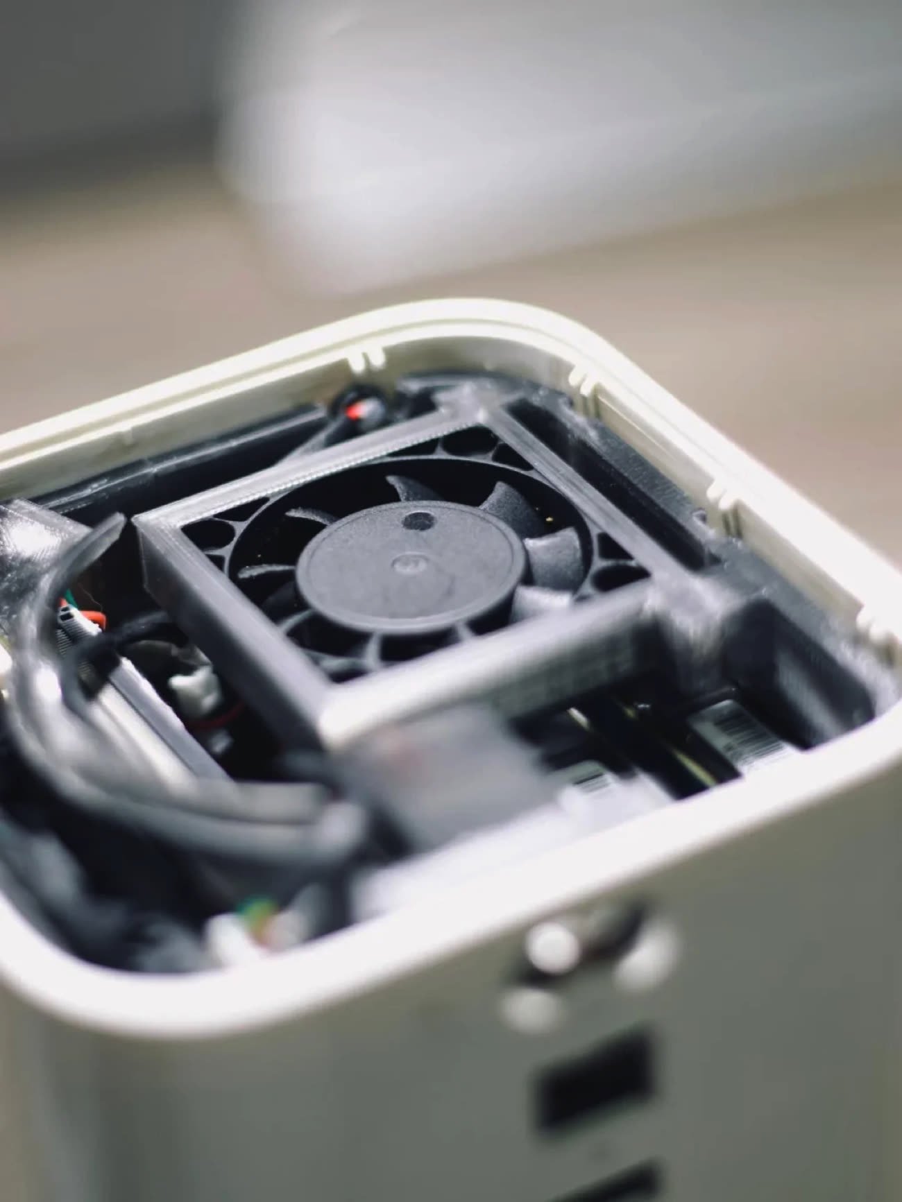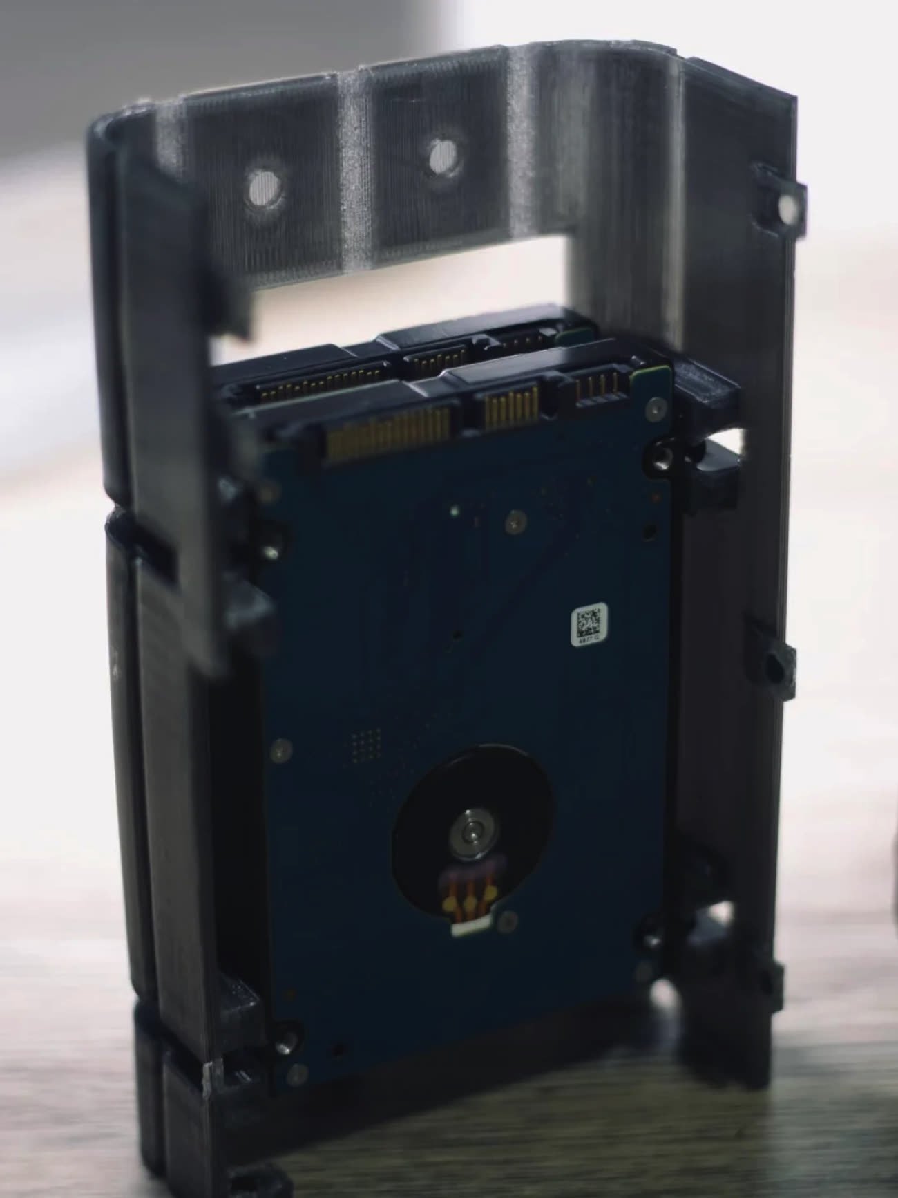 Il a donc vidé le boîtier Apple et choisi une carte mère compacte pour intégrer son propre système. Elle est équipée de deux prises Ethernet 2,5 Gb/s et d'un processeur Intel N100, bien adapté à un NAS maison. Pour le stockage, l'unique disque dur 3,5 pouces a été remplacé par un SSD M.2 de 2 To et deux disques durs 2,5 pouces de 5 To. Il a ensuite employé une imprimante 3D pour fabriquer l'ossature de son NAS, en adaptant les sorties aux prises disponibles sur la coque de l'appareil Apple.