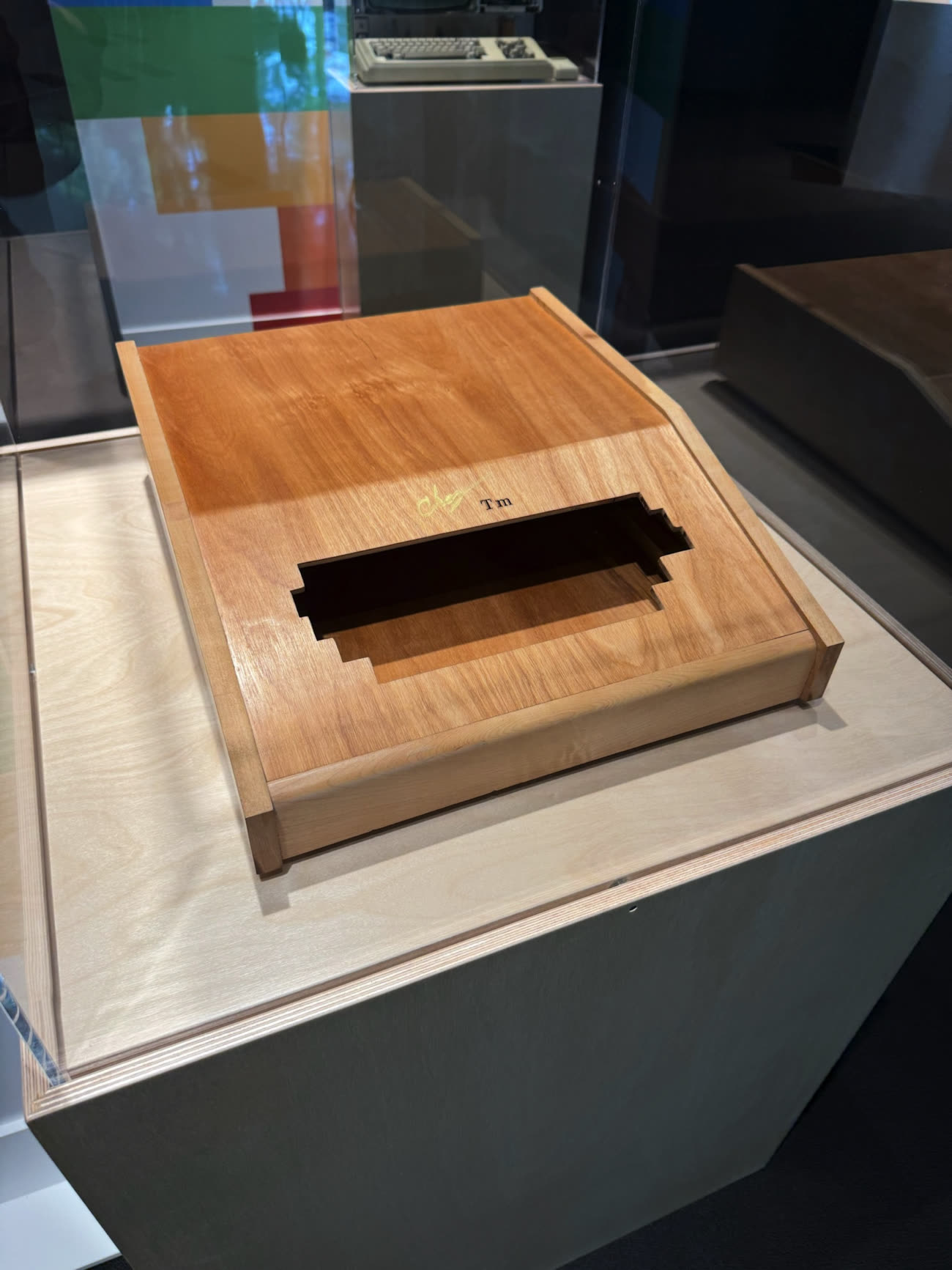 Ce prototype d'Apple I arbore un boîtier en bouleau et en érable, conçu et fabriqué par Charles « Chas » Pfister. Si ce dernier a signé son œuvre sur le prototype, Steve Jobs s'est empressé de faire retirer son nom de la version finale. Étonnant, non ?