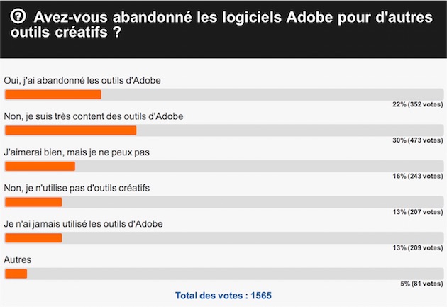 La question de notre précédent sondage était : avez-vous abandonné les logiciels Adobe pour d'autres outils créatifs ? Certains sont tentés de lâcher les outils de l’éditeur de San José surtout depuis que ce dernier a changé de modèle économique.