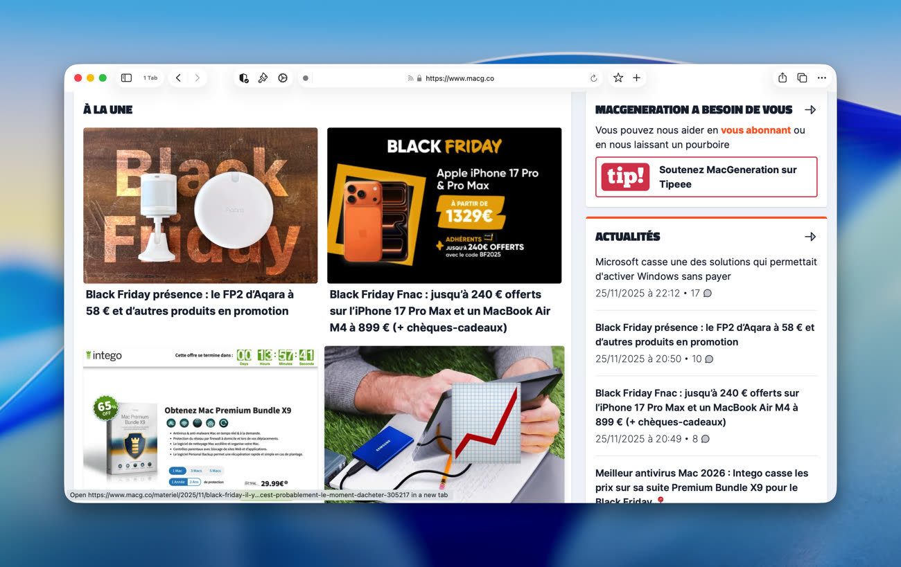 Plusieurs fonctions intéressantes sont embarquées. On y trouve un mode lecteur limitant les distractions, d’aperçu des liens ou encore de profil pour les webapps. D’autres détails lui donnent un temps d’avance sur Safari, comme une meilleure prise en charge d’anciennes versions de macOS, la présence d’un bouton pour rapidement ajouter un site à ses RSS ou un mode économie d’énergie.