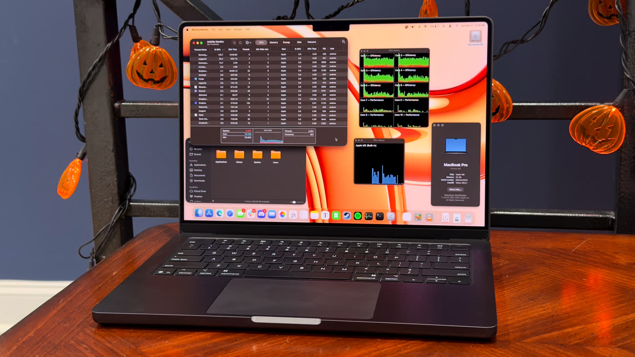 Tom's Hardware, habitués aux tests techniques, montre que le SSD est réellement plus rapide, tant dans les tests théoriques que pratiques (environ 6 Go/s). De même, le CPU est nettement plus rapide que le M4, tout comme la partie graphique. L'antique Shadow of the Tomb Raider est jouable à pratiquement 60 images/s en 1200p et l'écran Mini LED est toujours aussi bon, avec une luminosité élevée que les écrans OLED de PC ne peuvent pas égaler. Ils remarquent tout de même, comme toujours depuis une bonne dizaine d'années, que le MacBook Pro ne peut pas être mis à jour, et que les options proposées par Apple sont onéreuses. L'autonomie est visiblement du même ordre (à quelques minutes près) que pour le modèle M4, et ils reprochent (eux aussi) l'absence de Wi-Fi 7.