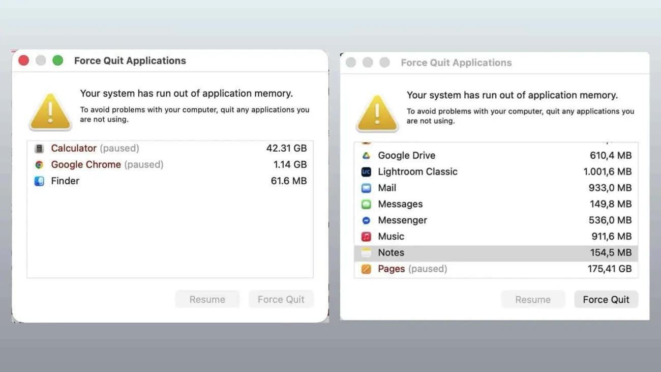 Le bug n’est pas systématique, mais bien handicapant, d’autant qu’il semble toucher plus facilement les machines n’ayant que 8 Go de RAM. Et quand il arrive, il ne fait pas semblant : certains utilisateurs se sont retrouvés avec des applications légères comme Pages consommant plus de 175 Go de mémoire, ou pire la calculette demandant... 42 Go.