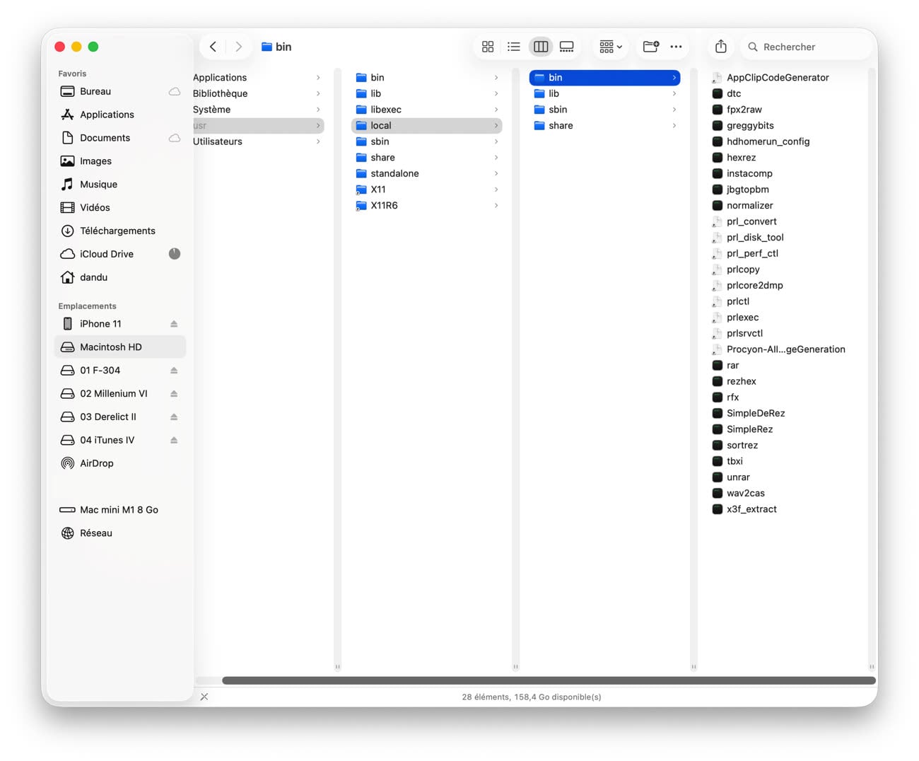 Première étape, installer l'app RAR. Dans le Finder, faites Aller > Aller au dossier et tapez /usr/local/bin. Dans ce dossier, il faut copier le fichier rar et le fichier unrar issu de WinRAR.
