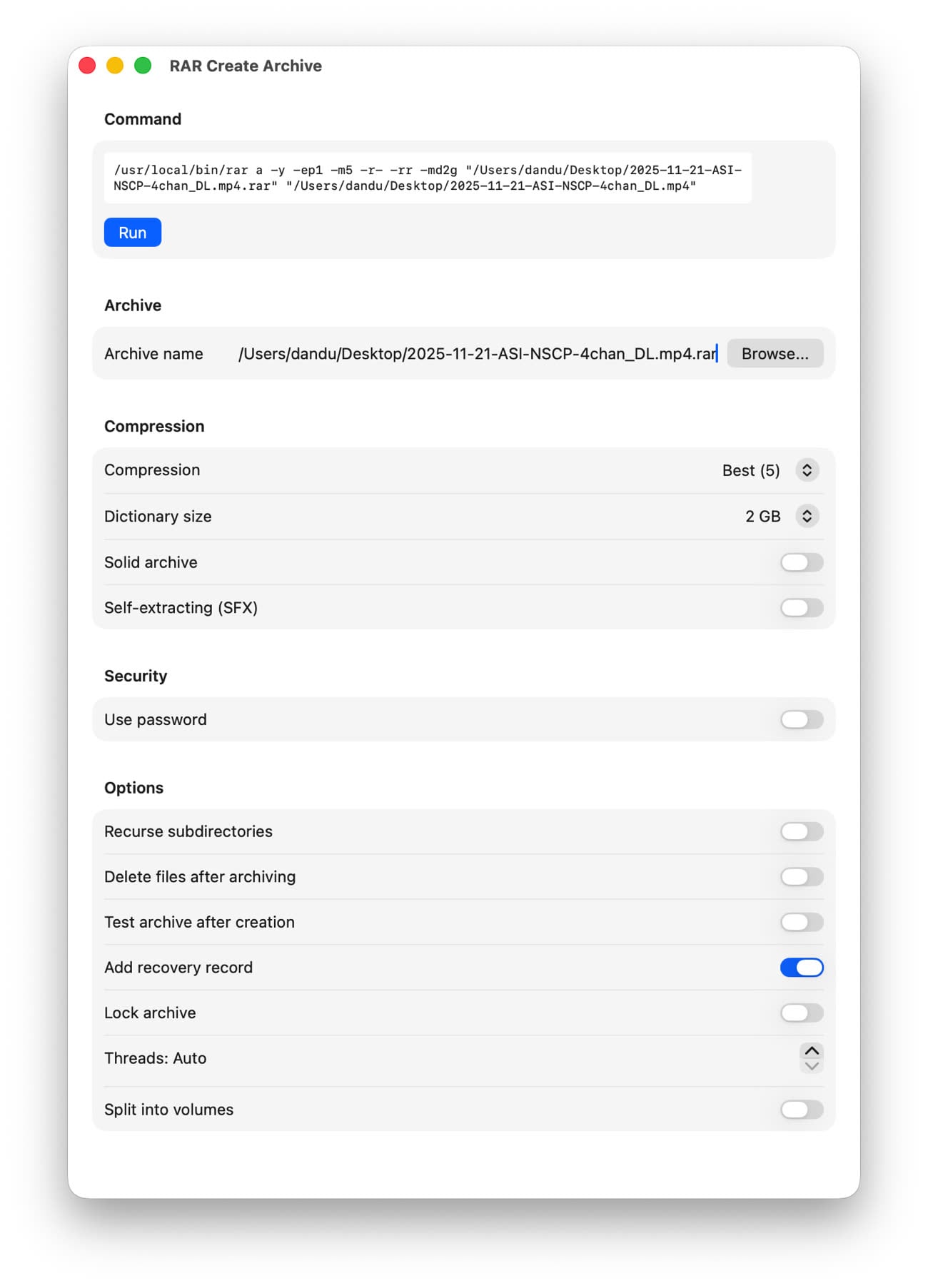 Maintenant, si vous faites un clic droit sur un fichier quelconque, vous pourrez choisir Actions rapides > RAR et sélectionner les (nombreux) paramètres. Et compresser en RAR facilement.