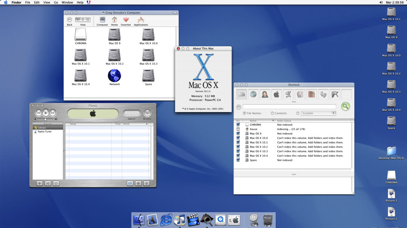 Reste qu’il faut déjà avoir la machine capable de faire tourner la bestiole : avec un PowerPC G3 au minimum, 1,5 Go d’espace disque disponible et 128 Mo (oui oui, Mo) de mémoire vive, ce ne sont pas toutes les machines qui peuvent passer à Mac OS X. Il faut se remémorer le paysage Apple de l’époque : les derniers ordinateurs sortis, y compris les plus puissants, sont rarement fournies avec plus de 64 Mo de RAM et 20 Go de disque dur.
