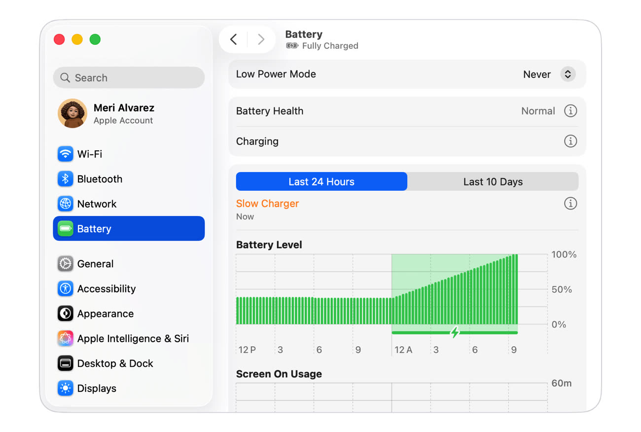 Après avoir introduit cette indication dans iOS 18, Apple ajoute à macOS un avertissement en cas de recharge lente d’un MacBook. Disponible à partir de macOS 26.4, la mention « chargeur lent » est visible à deux endroits le cas échéant : dans le menu Batterie de la barre des menus ainsi que dans la section Batterie des Réglages Système.