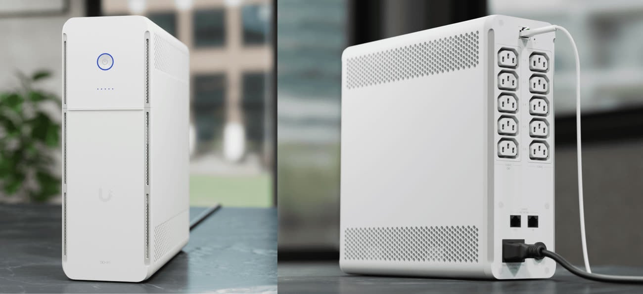 Ubiquiti enchaîne les annonces matérielles à un rythme soutenu et quelques semaines après avoir présenté une gamme complète de NAS, le spécialiste américain des produits réseau revient à la charge avec un nouveau segment. L’entreprise se lance en effet sur le marché des onduleurs1 avec deux modèles différents. L’UniFi UPS Tower est un appareil destiné au grand public, il prend la forme d’une petite tour comme son nom le suggère, intègre une batterie de 108 Wh pour une puissance de 600 W en sortie. Il s’agit d’un modèle de 1 000 VA qui intègre dix prises C13, dont cinq alimentées et cinq protégées contre les surtensions.