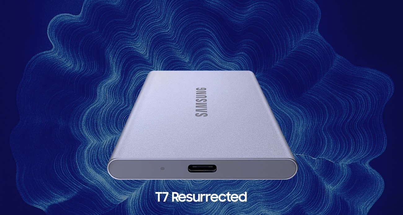 Samsung vient d'annoncer un nouveau SSD externe, le T7 Resurrected. Sur le papier, c'est l'équivalent du modèle T7 déjà en vente, mais avec un petit plus : un peu de green washing. Le SSD n'est pas vert, mais l'aluminium utilisé pour le boîtier est annoncé comme 100 % recyclé. Selon Samsung, le métal provient des chutes de la production des smartphones de la gamme Galaxy et il est argenté pour éviter d'employer des produits chimiques pour anodiser la coque.