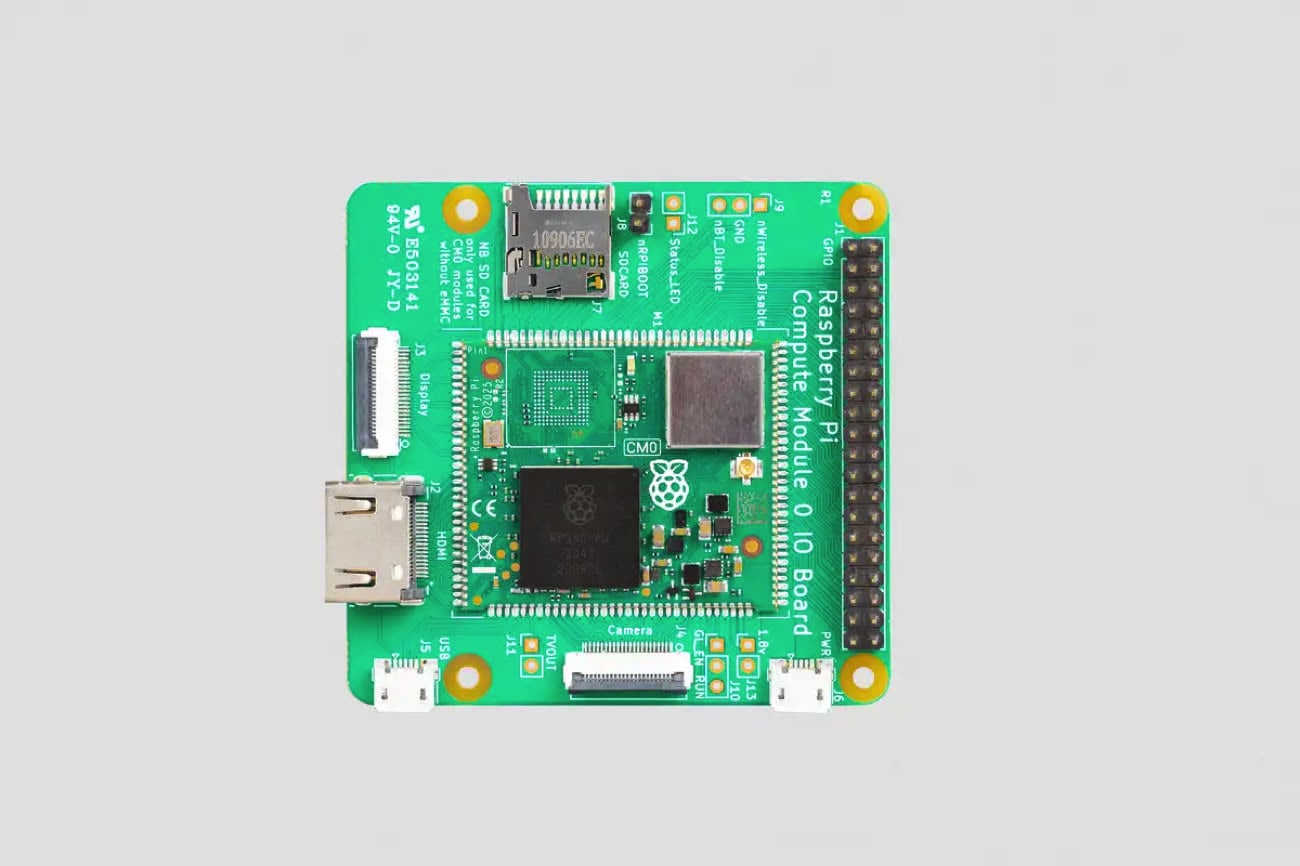 Cette nouvelle version est destinée aux appareils à très bas coût, et c'est ce qu'on appelle un SoM (System on Module), une carte très compacte — 39 x 33 x 2,8 mm — basée sur le Raspberry Pi Zero 2. On retrouve donc le système sur puce issu de Raspberry Pi 3 (mais à une fréquence plus faible) avec ses quatre cœurs Cortex A53 (à 1 GHz), 512 Mo de mémoire vive, une sortie vidéo mini HDMI et deux prises Micro USB. La première sert pour l'alimentation, la seconde peut être employée pour des accessoires.
