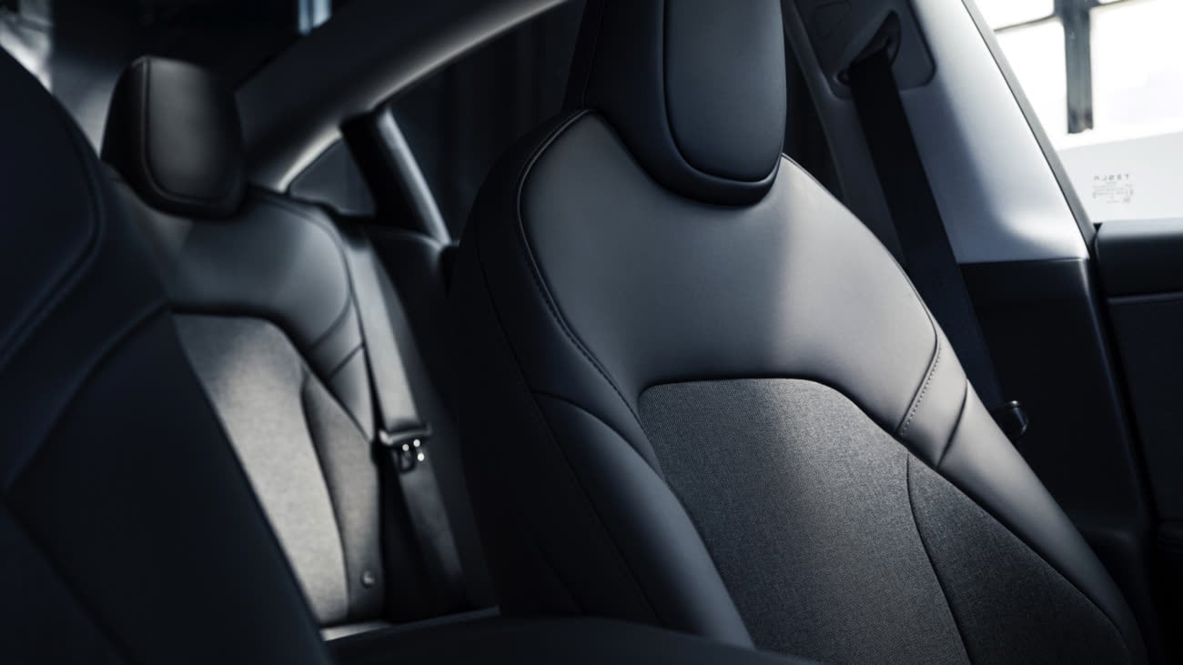 Dans le même ordre d’idée, la voiture est équipée de toutes les caméras et des ordinateurs nécessaires pour la conduite entièrement autonome, mais la version de base ne proposera qu’un régulateur adaptatif. Il faudra payer 8 000 $ en plus pour que la voiture reste entre les lignes ! La liste des retraits est encore longue à l’intérieur, Tesla a manifestement cherché à économiser le plus possible. La console centrale est désormais vidée, un grand espace ouvert sépare les deux chargeurs à induction du porte-gobelet. Si le volant reste chauffant, il doit être ajusté manuellement, ce qui est surtout gênant quand des conducteurs de tailles très différentes se partagent le véhicule1. Les sièges avant restent chauffés et électriques, même si Tesla a retiré les boutons physiques : les ajustements doivent désormais se faire sur l’écran. Le passage au tissu ne sera pas nécessairement un défaut, surtout en été où le similicuir chauffait beaucoup la peau.