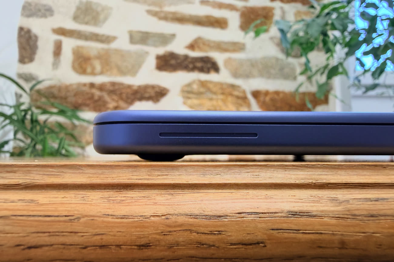 Cette salve de chiffres positionne le Mac portable le moins cher de l’histoire directement face au MacBook Air, au lieu d’ouvrir un nouveau segment. S’il est légèrement plus petit, c’est parce que son écran l’est tout autant, on y reviendra dans la suite. Vous ne choisirez pas l’un ou l’autre en fonction de ce critère en tout cas et Apple n’a clairement pas optimisé son nouveau produit pour la finesse et la légèreté. Entre la réduction des coûts et la réparation simplifiée, le Neo a des objectifs différents, ce qui explique ce résultat. Pour autant, ce n’est en aucun cas un ordinateur épais ou encombrant.