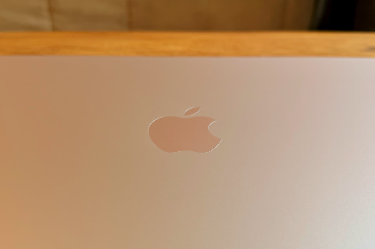 La conception en aluminium est aussi solide et premium que sur les autres modèles, on peut prendre l’ordinateur par le coin et rien ne bouge. On est loin de l’entrée de gamme en plastique que l’on retrouve partout ailleurs dans les mêmes zones tarifaires. Par rapport aux autres Mac, le seul signe distinctif à l’extérieur, outre les couleurs bien entendu, est la pomme au dos qui abandonne l’acier poli au profit d’un aluminium traité différemment. C’est moins brillant et c’est tant mieux, je trouve : la version brillante attrape bien trop facilement les empreintes de doigts et les rayures.
