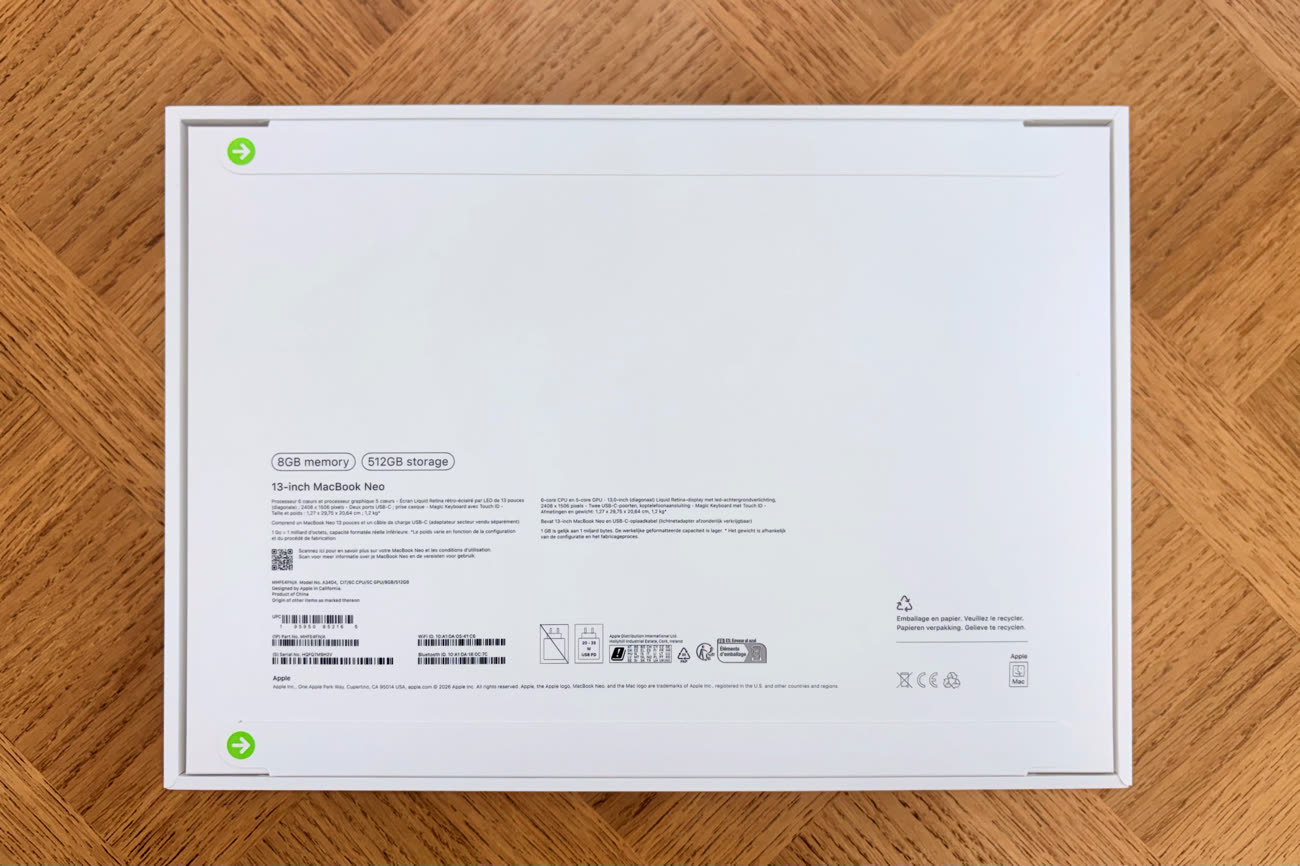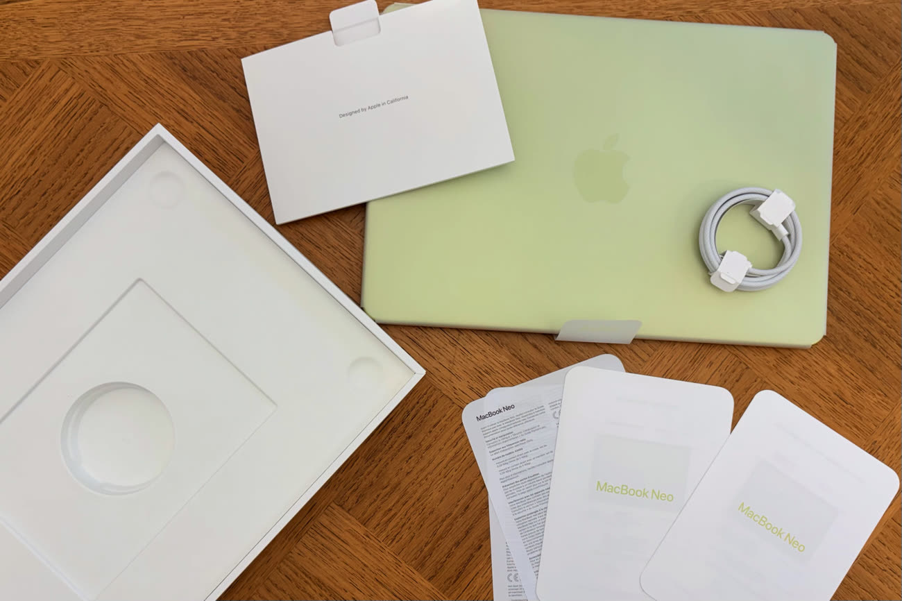 J’ai publié quelques photos du déballage avec mes premières impressions. Elles n’ont pas changé quand j’écris ces lignes, après quelques jours à maltraiter utiliser des MacBook Neo. Sans contexte, vous auriez bien du mal à deviner que vous avez un portable moins cher.